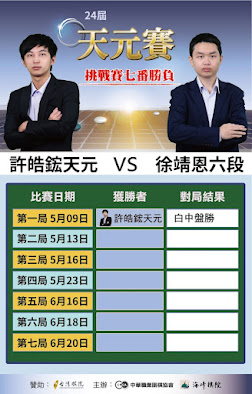 第24屆天元挑戰賽七番勝負第一局今日揭幕,現任天元許皓鋐展現老練應對,於中盤果敢戰鬥、分斷對手棋形,最終擊退挑戰者徐靖恩,於七番勝負先下一城。